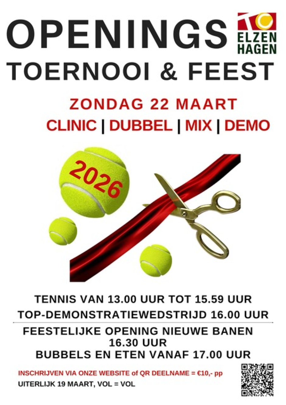 Op zondagmiddag 22 maart a.s. organiseert de recreatiecommissie van TC Elzenhagen een gezellig openingstoernooi en clinic voor senior leden (17+).